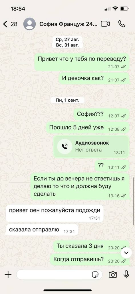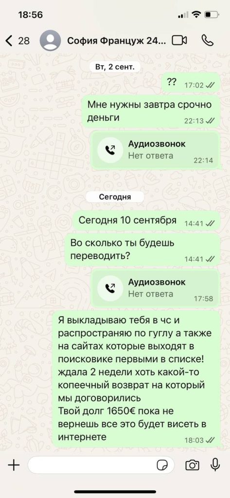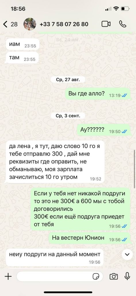 София клялась и божилась ее простить и отправить хотя бы 300€ за квартиру (все что она может)