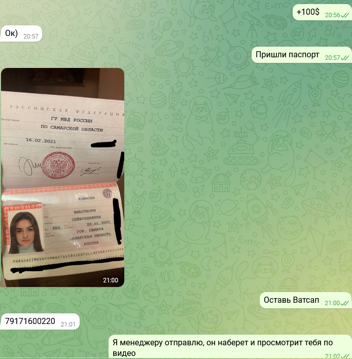 Обещала 15к за удаление, кинула 3к, сменила номер, ревела 2 недели, а затем сказала что была не против рассылки и публикации, так как считает что деньги важнее всего, а реклама ее секс-услуг принесет ей доп.заработок.