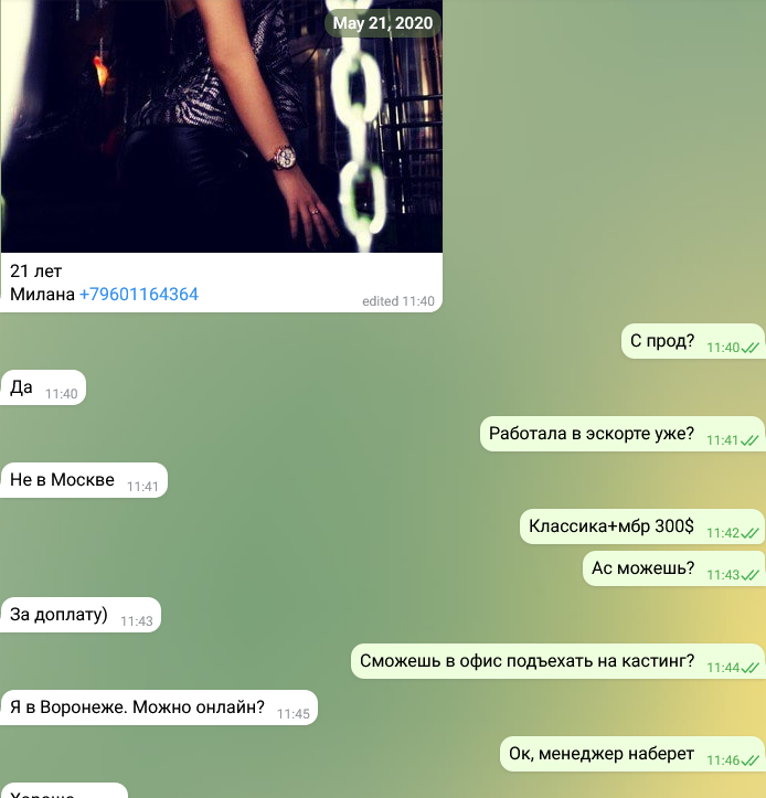 Милана, шлюха из Воронежа, на кастинге эскорт-агентства легко разделась, не видя собеседника, без тени сомнения подтверждая свою готовность на любые условия. Она активно занималась МЖМ, что сделало её одной из востребованных среди клиентов.