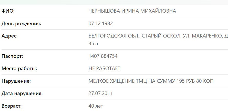 Мать – ЧЕРНЫШОВА ИРИНА МИХАЙЛОВНА 07.12.1982