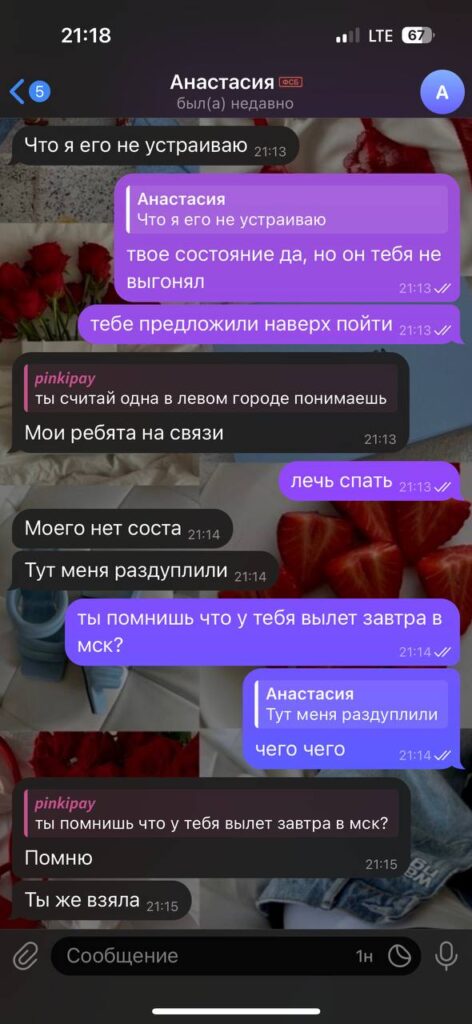 Её никто не выгонял и не обижал. Наоборот, просили её остаться и выспаться. Никто из агентства не хотел, чтобы она одна осталась пьяной и в другом городе