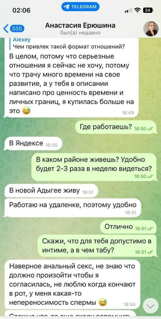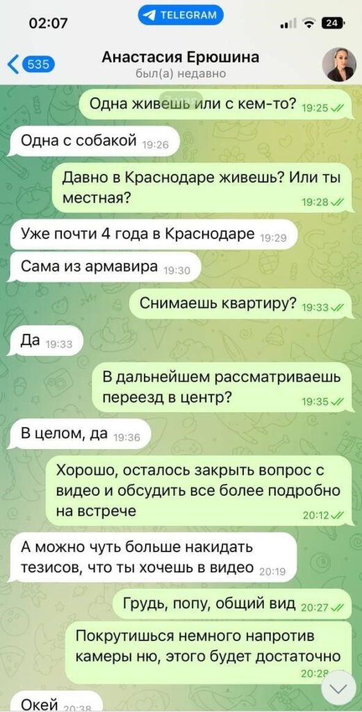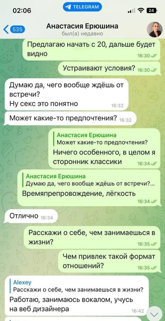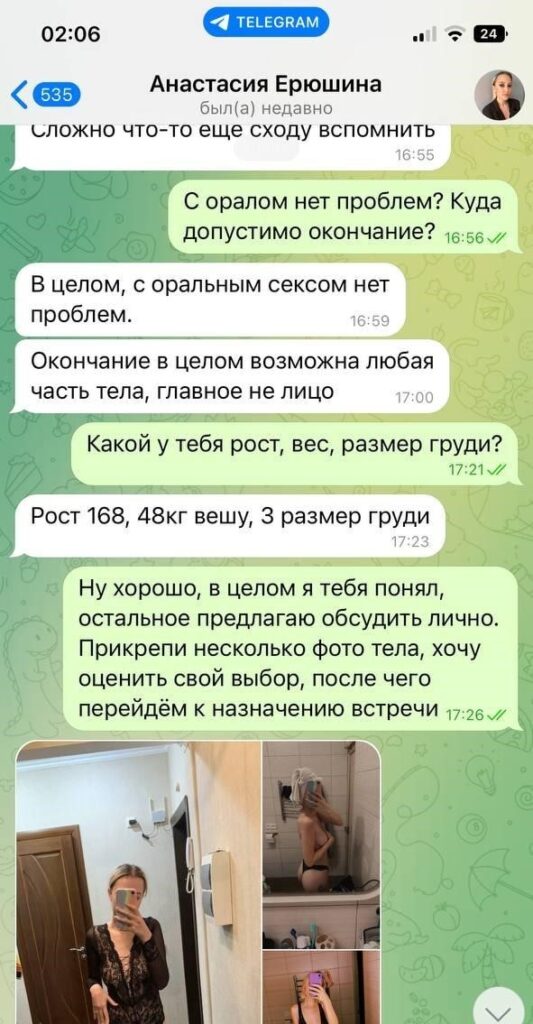 Была не против рассылки и публикации, так как считает что деньги важнее всего, а реклама ее секс-услуг принесет ей доп.заработок.