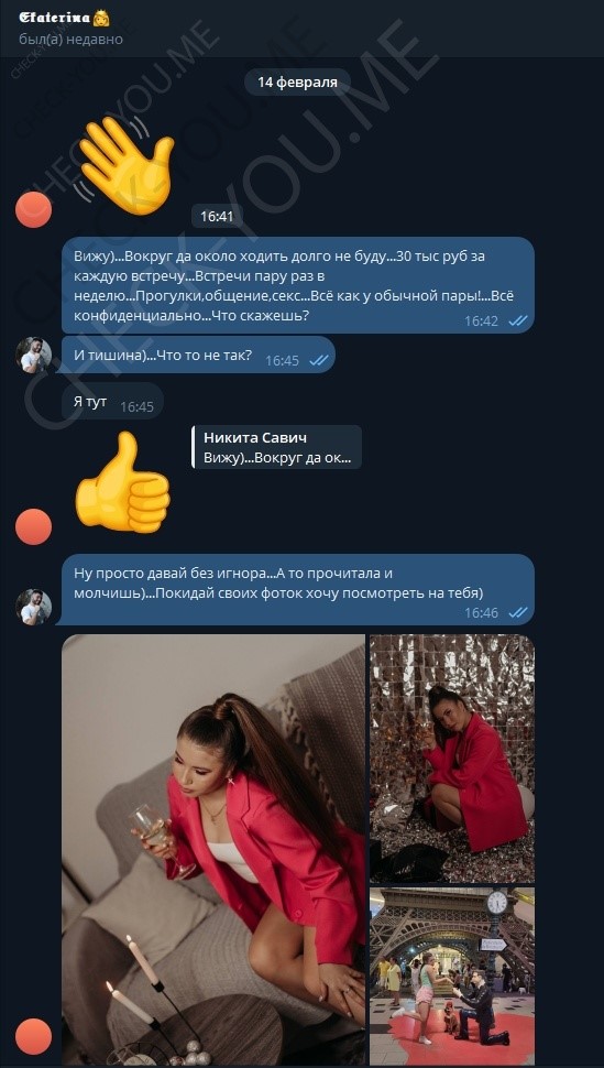 Была не против рассылки и публикации, так как считает что деньги важнее всего, а реклама ее секс-услуг принесет ей доп.заработок.