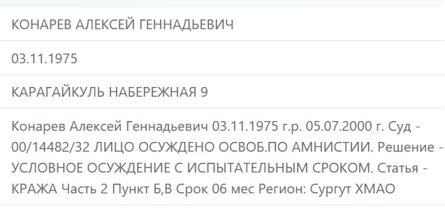 Мать – КОНАРЕВА ОЛЬГА АНАТОЛЬЕВНА 23.05.1975