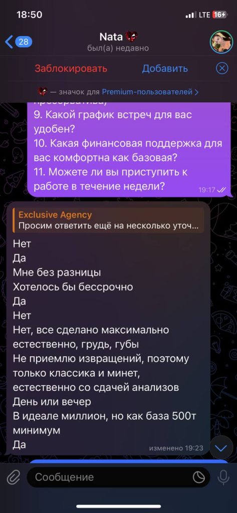 Очень интересная история у девушки. Нам ее в начале слило агентство, потому что она начала выебываться. И были только обычные скрин переписки. Мы ей написали с целью удалить, она проигнорировала. Это была ее ошибка. Начали искать дальше. Узнали, что работала вебкам. Увидели, что там были сцены с девушкой. Написали ей. Так как стало немножко жалко ее, хотели бесплатно удалить. Все-таки может быть уголовка сейчас и так далее. Но она начала угрожать юристом. Тогда мы пошли еще дальше. Начали еще искать. Оказалось, что там целый пак видосов с ней. Которые она записывала в Дубае со своей же подружкой. Секс втроем. Секс с афроамериканцем. Мастурбация, лесби и так далее. Девочка все время угрожает каким-то своим юристом. Можете позвонить ей или написать, или всей ее семье, и спросить, какого будет им, когда ее признают экстремисткой и заблокируют все средства за участие в международном ЛГБТ-экстремистском сообществе.
