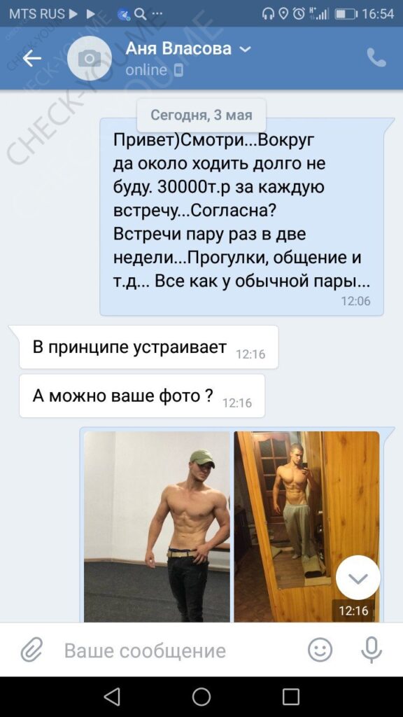 Была не против рассылки и публикации, хотя могла удалить за сумму, которую за неделю тратит, так как считает что деньги важнее всего, а реклама ее секс-услуг принесет ей доп.заработок.