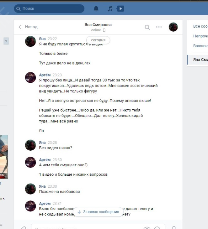 Была не против рассылки и публикации, хотя могла удалить за сумму, которую за неделю тратит, так как считает что деньги важнее всего, а реклама ее секс-услуг принесет ей доп.заработок.