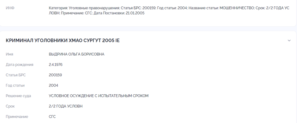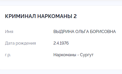 ВЫДРИНА ОЛЬГА БОРИСОВНА 02.04.1976 мать-наркоманка